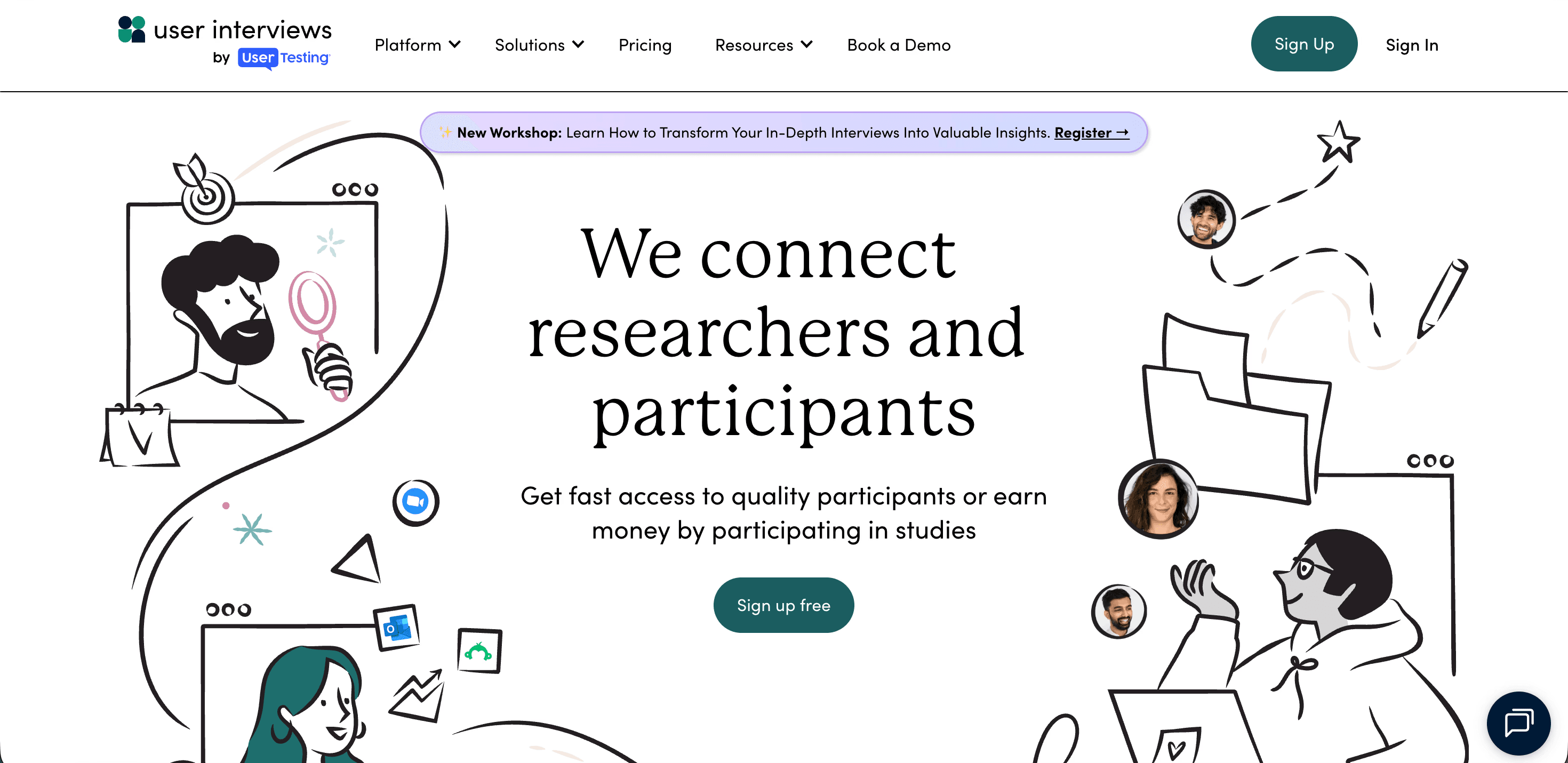 User Interviews | Participant recruitment | UX teams needing qualified respondents for studies run on other platforms | Recruitment and scheduling layer, not a moderation tool | Recruitment is the core product |